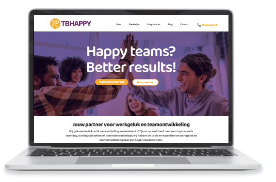 Een helder verhaal, daar bleef het zeker niet bij. Samen hebben we haar verhaal tot leven gebracht in een nieuwe huisstijl waarin haar energie en heldere propositie duidelijk naar voren komt. Nu heeft ze alle ingrediënten om díe stappen te maken die ze graag wilde maken. Thessa zou Thessa niet zijn als ze het niet groots aan zou pakken. Een ware brand reveal party was al gepland en iedereen was al uitgenodigd voordat haar website gereed was. En toch stond ze daar, vol trots, niet als ZZP’er, maar als eigenaar van het trainingsbureau voor managers die aan sterke teams willen bouwen. Want: Happy teams, Better results!